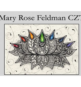 The Lotus is a lovely symbol of resilience because it uses a muddy root system to create beautiful flowers. It’s meaning expands across many cultures to represent prosperity, spirituality and purity. In this tangled version, you will create a 7 petal lotus flower, with each petal representing one of the chakra energy points. After tangling, you will tint each petal in the chakra color.